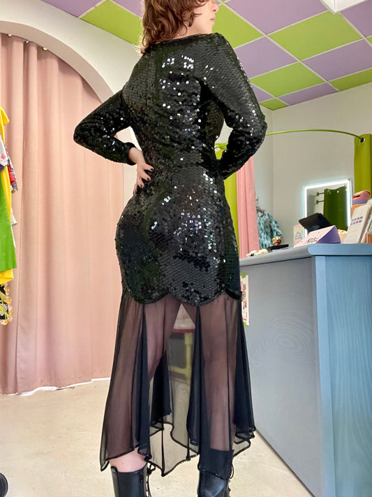 Black Vintage Sequin/Lace Mermaid Style Cocktail Dress | Niteline by Della Roufogali Holiday Dress Size 10