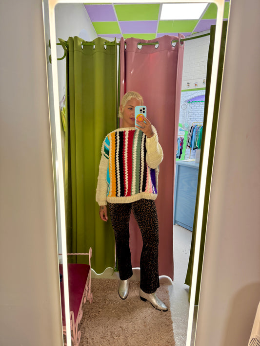 Sz L Handmade Knit Colorblock Sweater