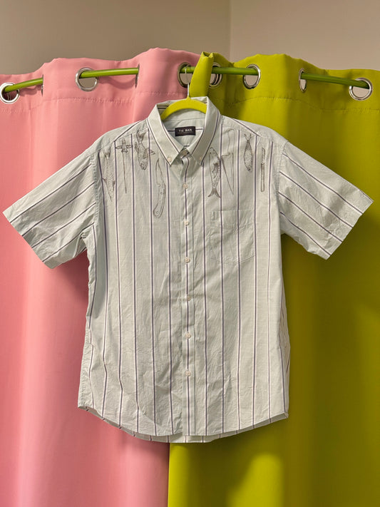 Sz L Doodle Fish + Knives Button-Down | Marker Collection