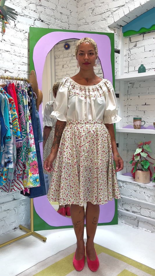 Sz XL Floral Semi-Sheer Off-the-Shoulder Skirt Set