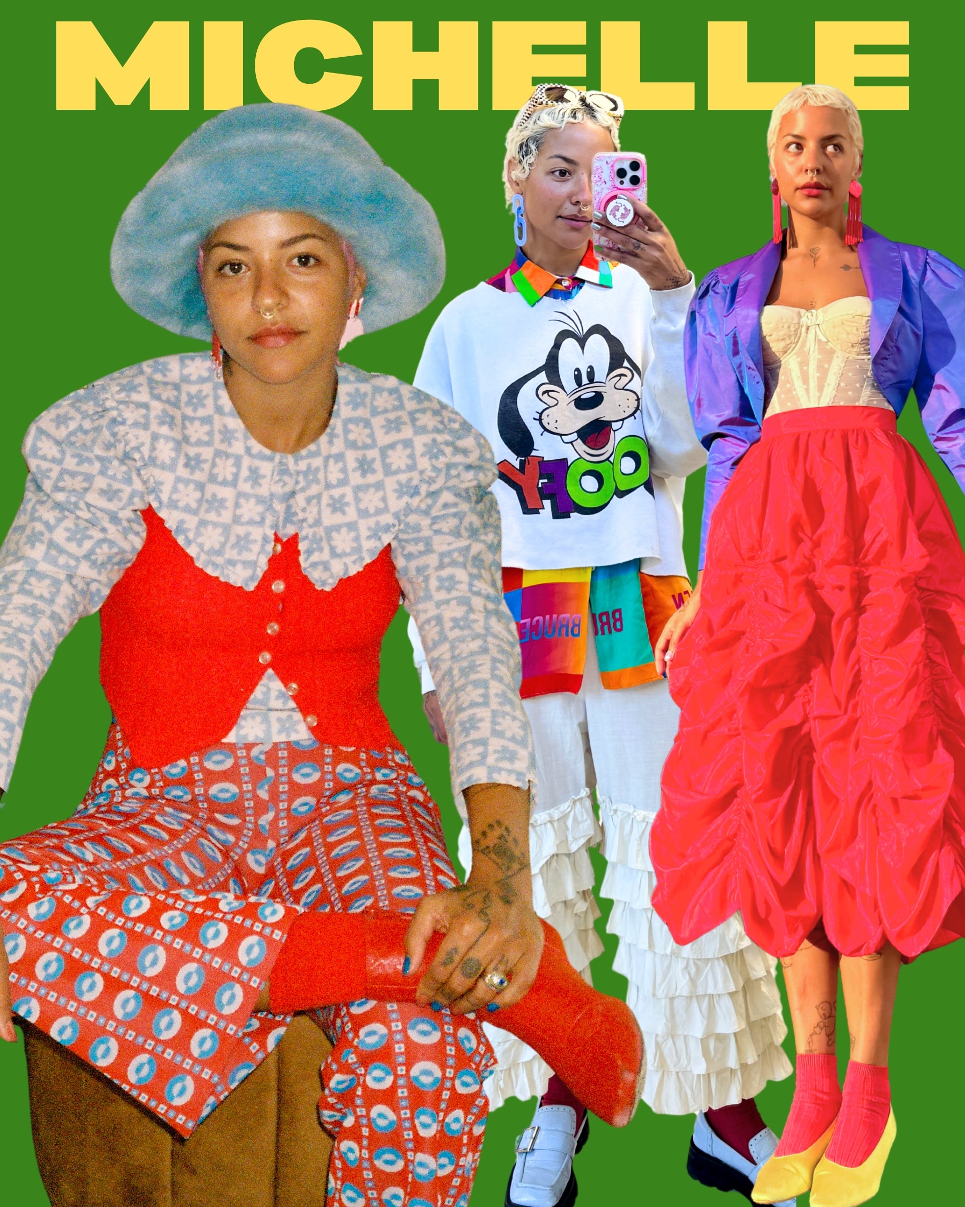 Hi I’m Michelle! I describe my personal style as bold and playful. I love to mix vintage silhouettes and patterns to create ensembles with visual impact. I view dressing as an art form and I can apply my sensibility to anyone’s personal style or help them to discover their style if they are unsure. My goal is to teach principles that can scale from minimal looks all the way to big maximalist statements.