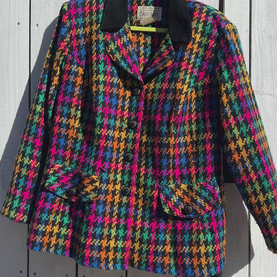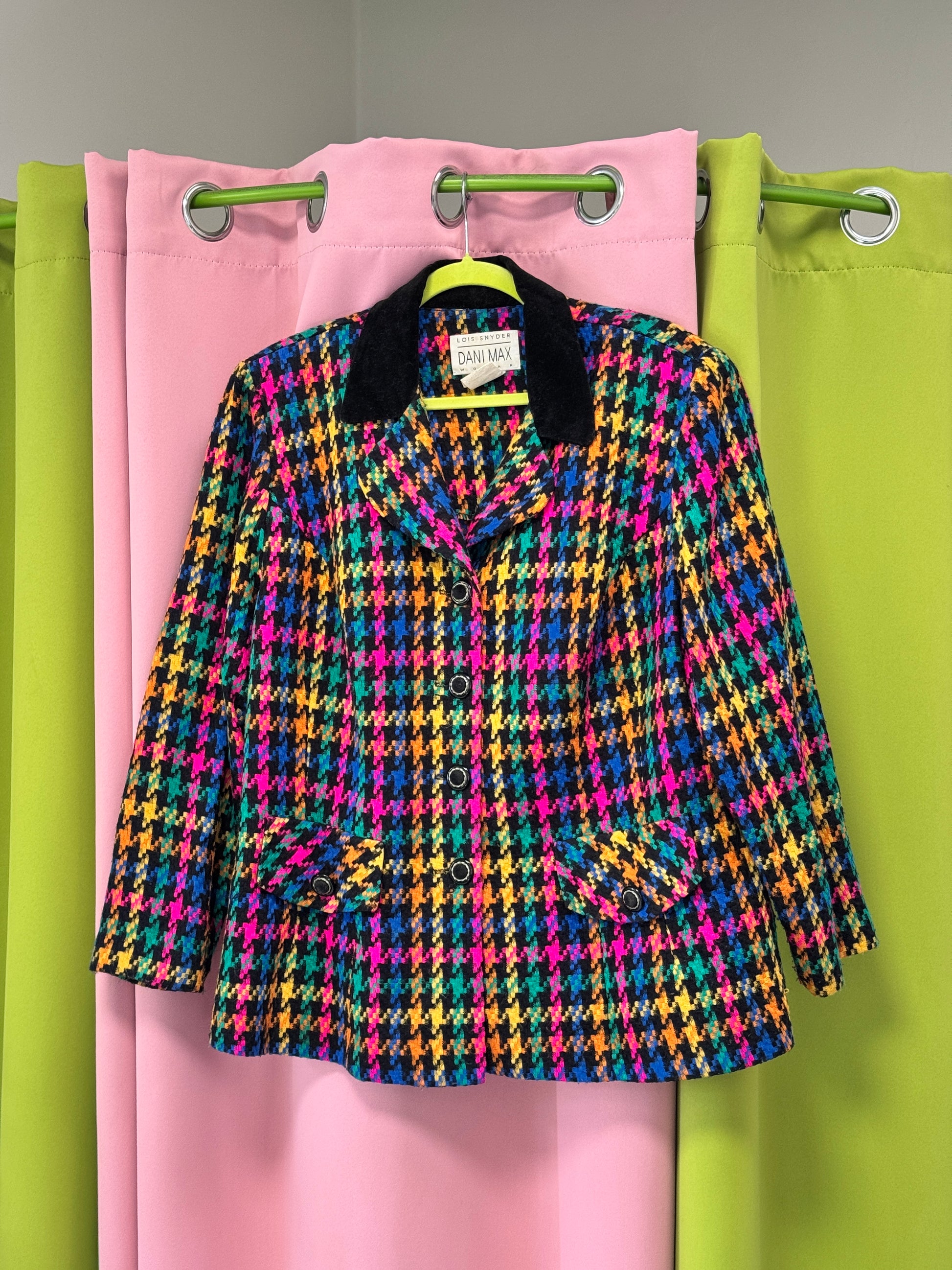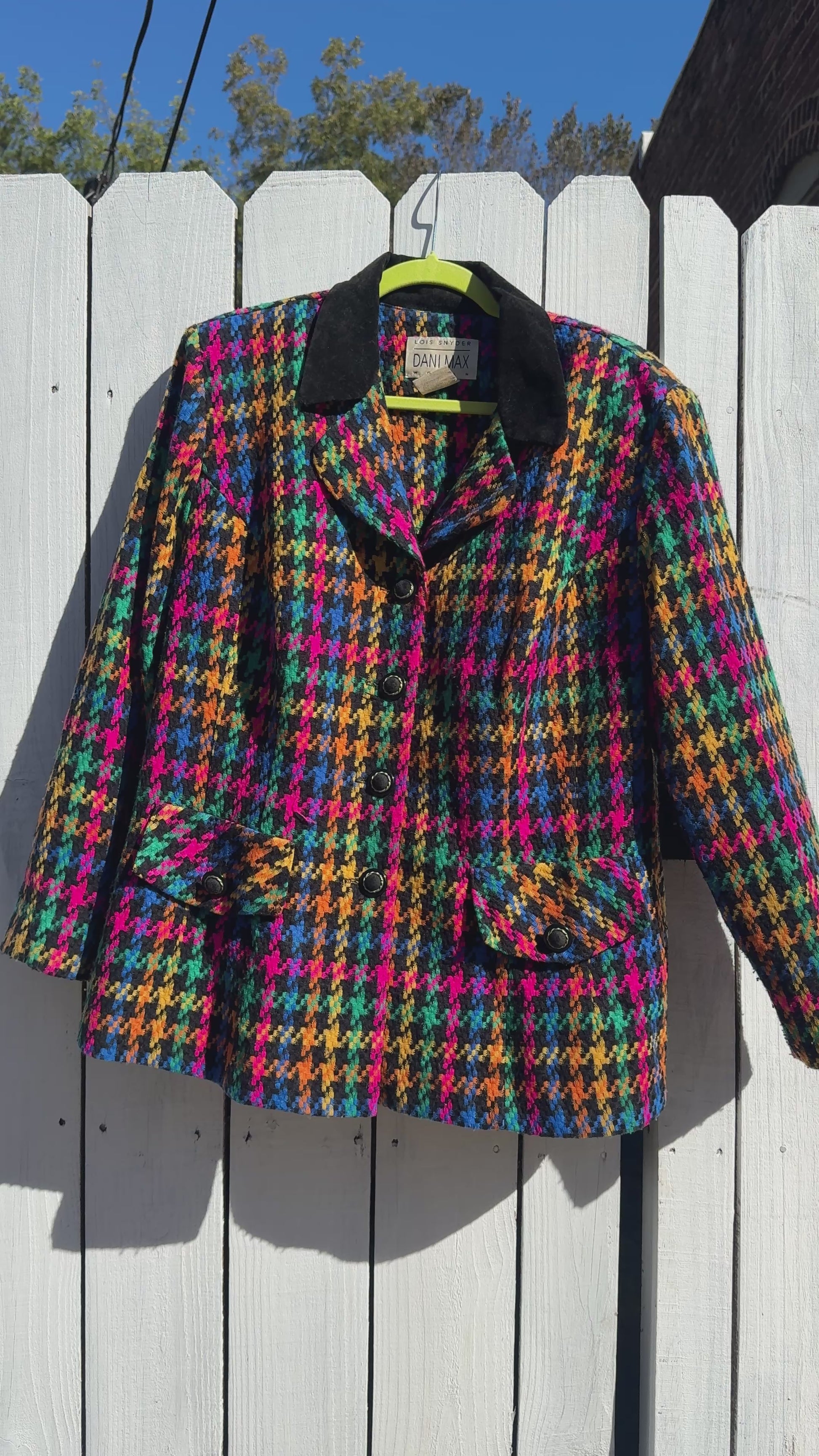 Sz XL VTG Technicolor Houndstooth Blazer Jacket